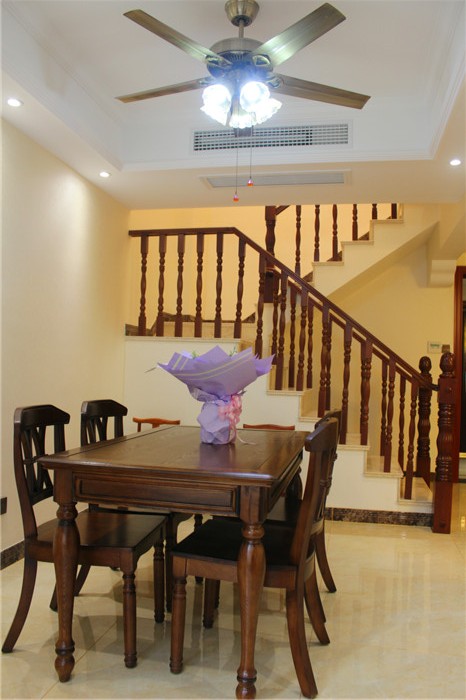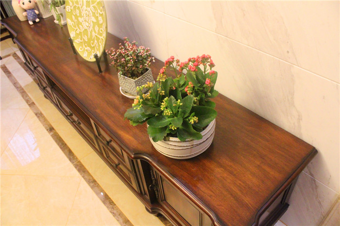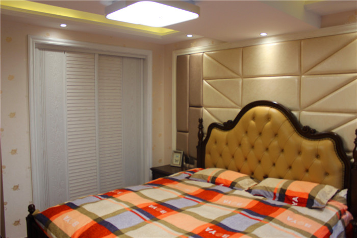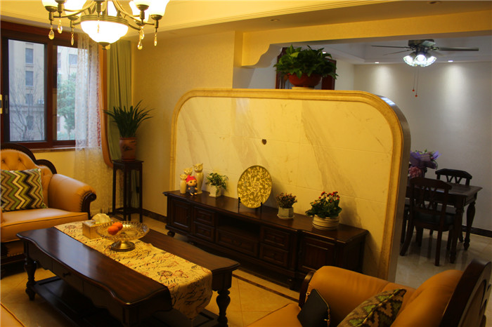 簡約美式風(fēng)格不需要太多的花樣和繁雜的色系,而是在主張簡約的同時(shí)不失尊貴,強(qiáng)調(diào)一種心神的回歸 。本案無論在空間布局、色彩運(yùn)用上,還是在材質(zhì)選擇上,處處尊崇簡而不凡的簡約美式簡約風(fēng)格。實(shí) 木的家具,沉穩(wěn)的皮具沙發(fā),復(fù)古的電視背景墻,流露出一股濃濃的美洲風(fēng)情.客廳深棕色的沙發(fā),規(guī)整的地 面瓷磚拼花,瞬間給人一種尊貴之感;客廳和餐廳之間通透的背景墻設(shè)計(jì),豐富了空間的層次感。臥室是業(yè) 主休息的空間,也是停留時(shí)間最長的地方,所以遵從了功能性和美觀性相結(jié)合的原則。臥室的亮點(diǎn)是整 面皮革硬包的床頭背景墻,這個(gè)造型與實(shí)木地板相呼應(yīng),增強(qiáng)了空間的開闊性。