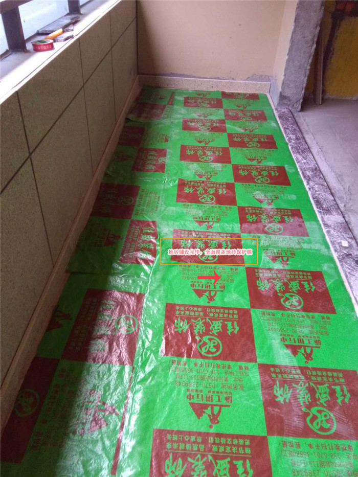 瓷磚鋪設好 保護膜全面覆蓋以防刮擦